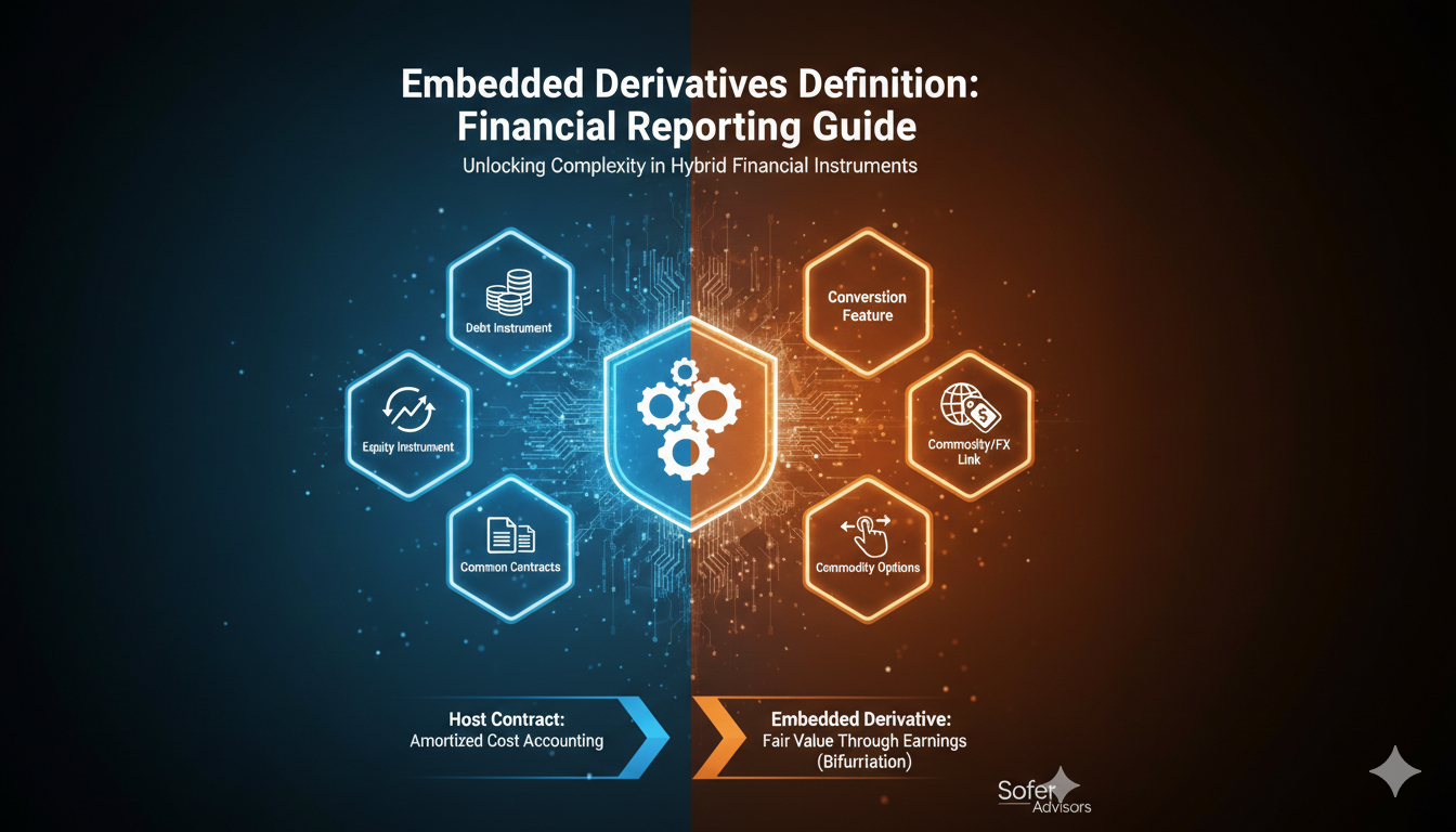 An embedded derivative is a component of a financial instrument that modifies the cash flows of the host contract based on changes in an underlying variable such as interest rates, commodity prices, or foreign exchange rates. These derivatives cannot be transferred separately from their host contract and require specialized accounting treatment under ASC 815. Understanding embedded derivatives becomes essential when Atlanta companies issue convertible bonds, structured notes, or other hybrid financial instruments.